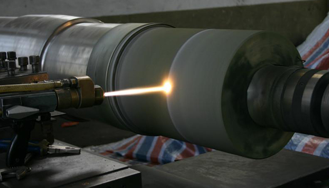 1、凹切處理,表面存在疲勞層和局部嚴(yán)重拉傷的溝痕時,在強度允許的前提下可以進行車削處理,為熱噴涂提供容納的空間。