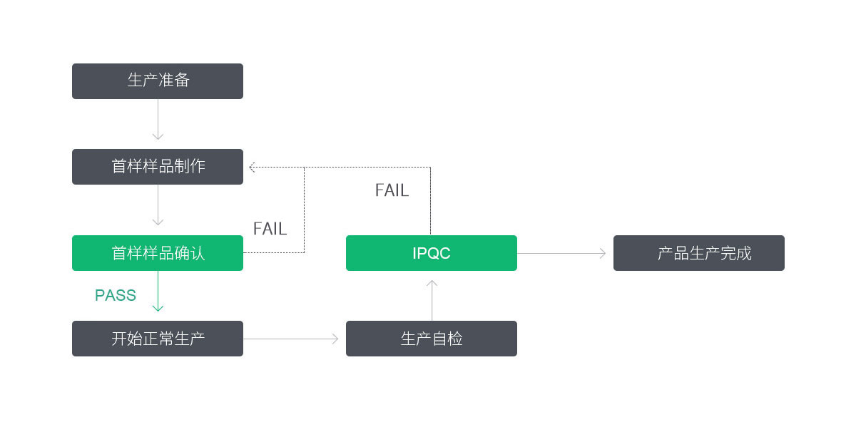 建立健全的質(zhì)量管理制度,針對生產(chǎn)加工控制過程建立來料檢驗(yàn)(IQC),過程檢驗(yàn)(IPQC),終檢(FQC),出貨檢驗(yàn)(OQC)四個階段檢驗(yàn),全方位控制產(chǎn)品質(zhì)量。嚴(yán)格控制原材料質(zhì)量,嚴(yán)格執(zhí)行各工序的工藝參數(shù),嚴(yán)格執(zhí)行檢驗(yàn)過程,依據(jù)檢驗(yàn)規(guī)范及客戶要求等進(jìn)行有序管控,確保產(chǎn)品出貨質(zhì)量滿足客戶需求。